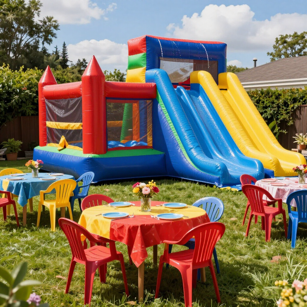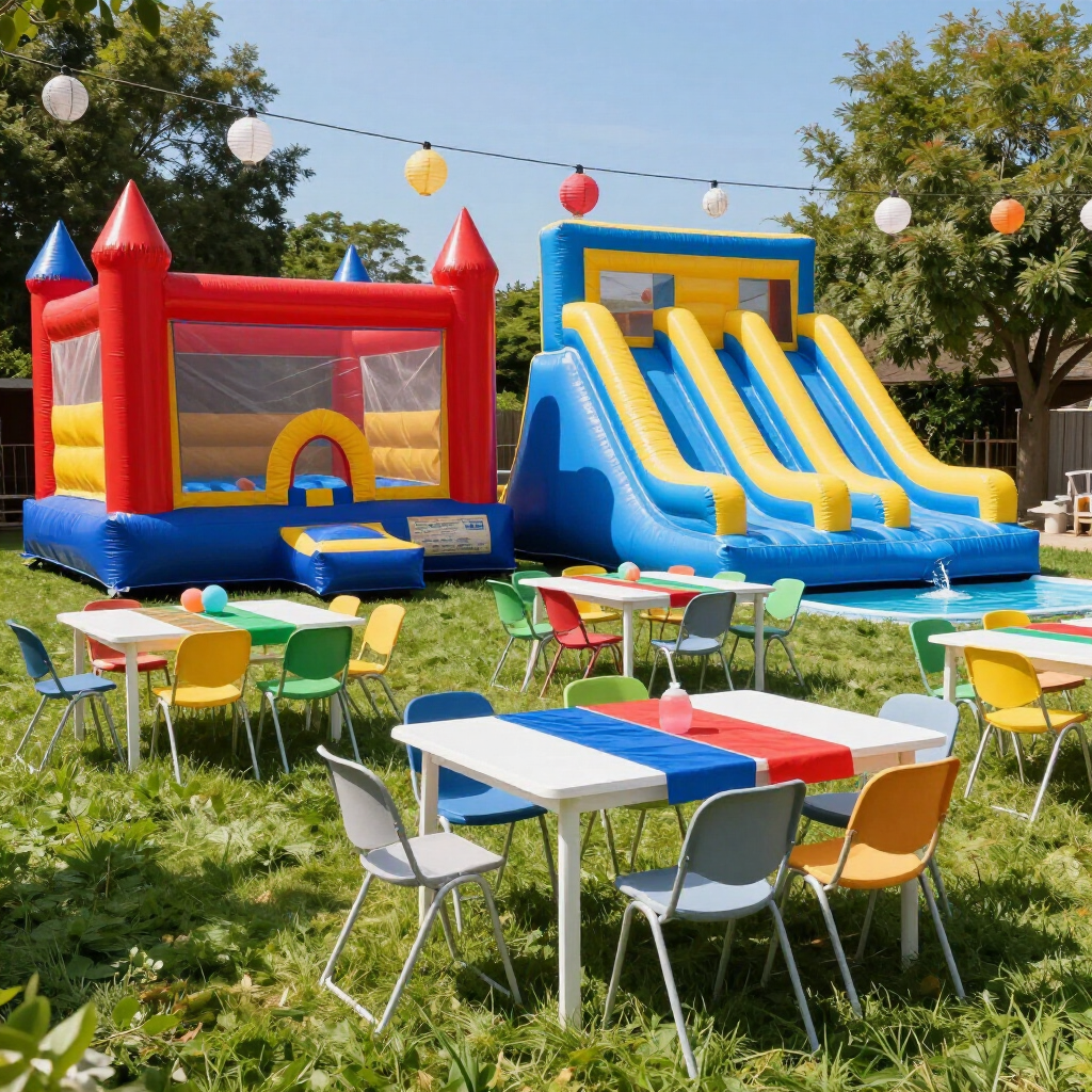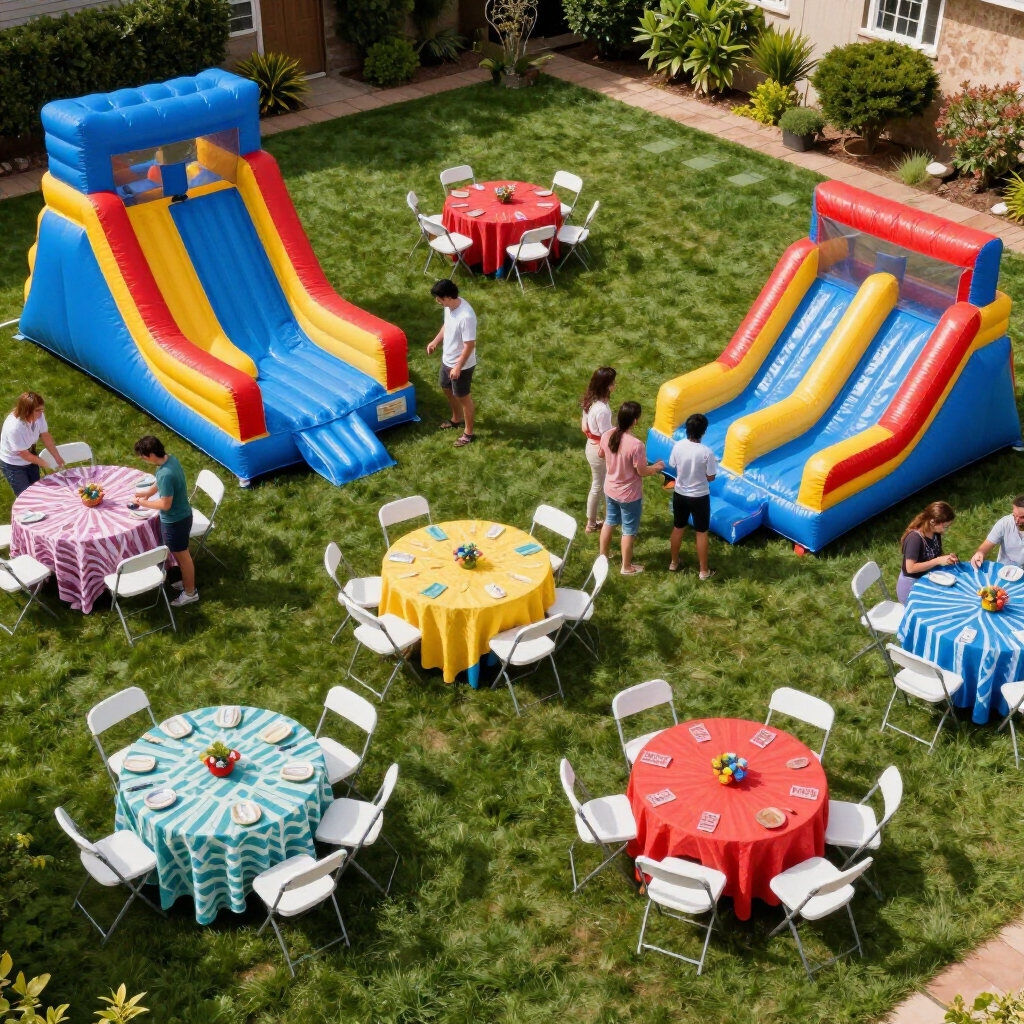 At Legendary Party Rentalz, we specialize in making your events unforgettable. Whether you're hosting a birthday party, a family reunion, or a corporate gathering, we provide tables and chairs to accommodate your guests comfortably. Our exciting combo unit bouncy house and two 18 ft water slides add a splash of fun to any occasion, ensuring that everyone has a great time. Let us help you create lasting memories with our reliable and affordable party rental services!